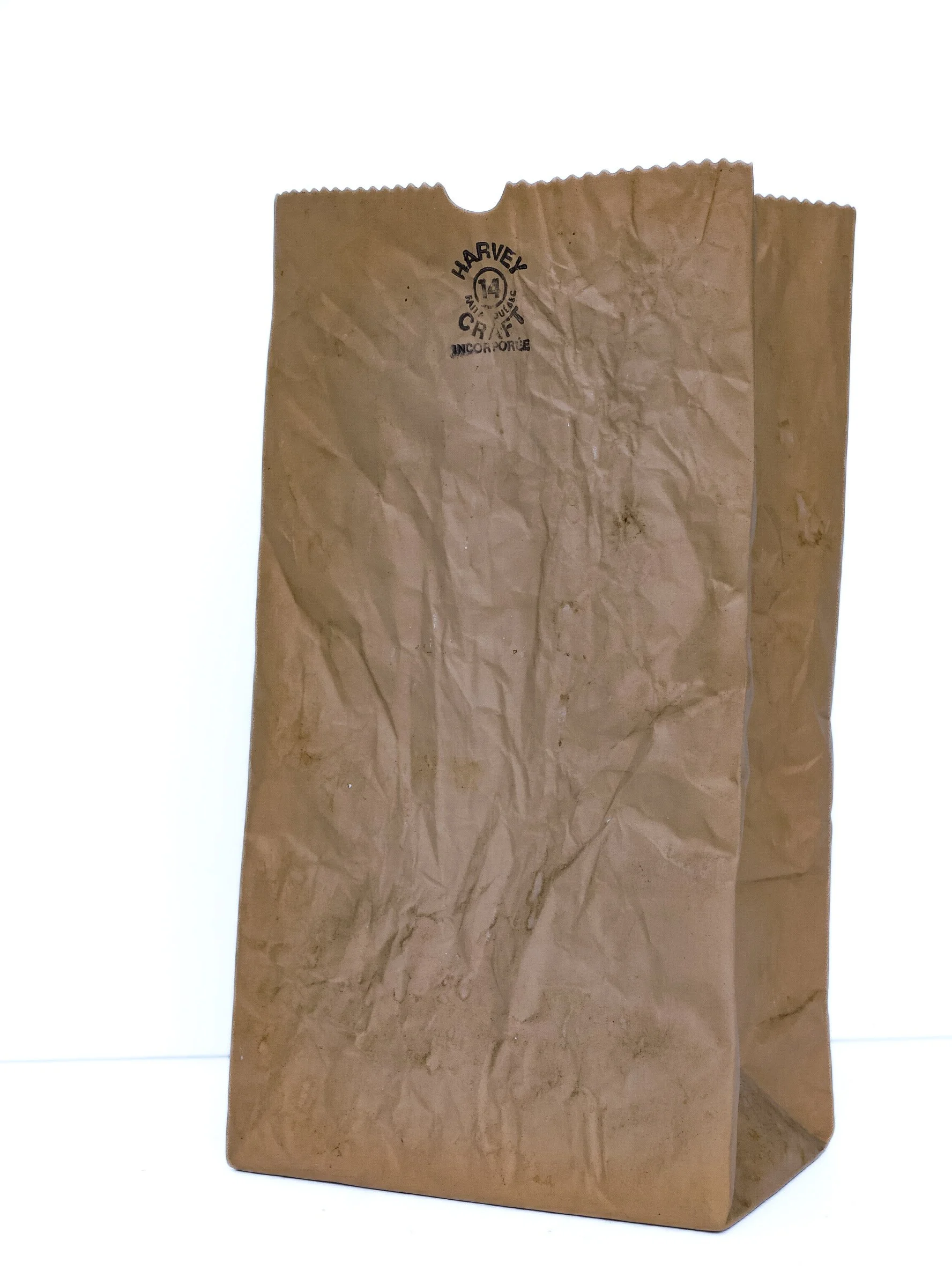 Large size iconic brown paper bag vase. Canada, 1970s. Artist: Michel Harvey. 14” tall
